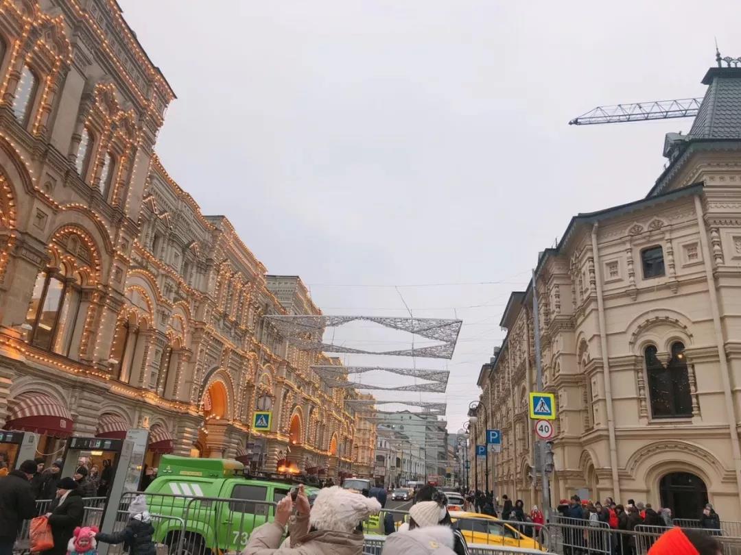 但天色似乎已晚,路上早在四點半就亮起了燈光。瓢潑大雪覆蓋了整個莫斯科,最深的地方已有五公分,讓每一處風景都有了冰雪的布景,仿佛置身在童話。
