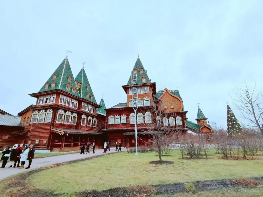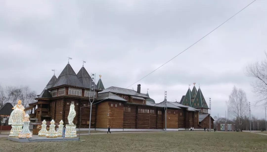 下一站是卡洛明斯克莊園,它擁有“世界第八大奇跡”的美譽,主宮殿由全木質結構并采用榫卯原理建成,共有270個房間和3000扇窗戶,絕對是工藝的極高造詣。這時天上零星下起了小雪,為行程帶來了幾分美意。
