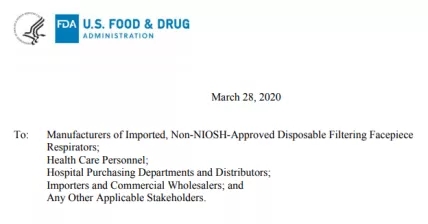 3月28日,在美國FDA新出臺(tái)的一次性呼吸器緊急使用授權(quán)(EUA)清單中,把中國KN95防護(hù)產(chǎn)品和GB2626-2006標(biāo)準(zhǔn)的產(chǎn)品都取消掉了。