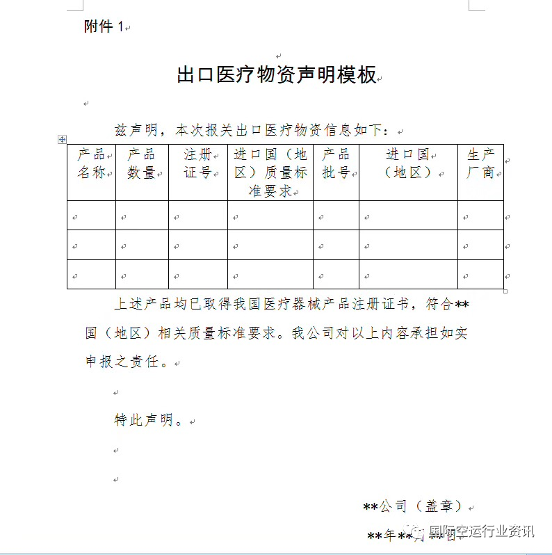 (出口醫(yī)療物資聲明:表格不能留空,表頭不要有模板兩個字,蓋生產銷售單位公章,每項必須填滿)