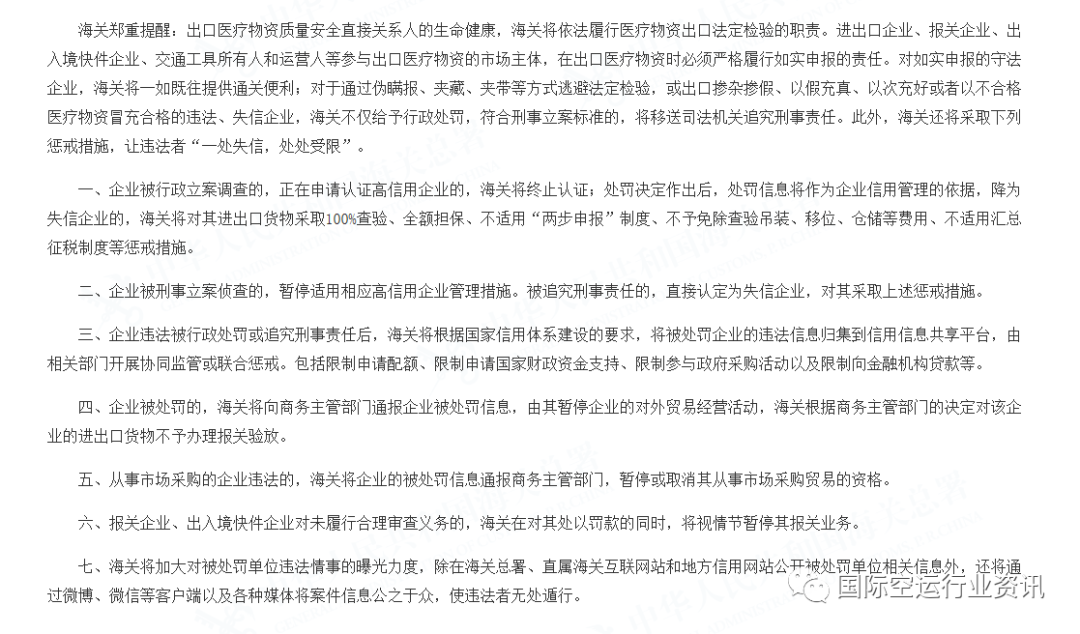 對于通過偽瞞報、夾藏、夾帶等方式逃避法定檢驗,或出口摻雜摻假、以假充真、以次充好或者以不合格醫(yī)療物資冒充合格的違法、失信企業(yè),海關不僅給予行政處罰,符合刑事立案標準的,將移送司法機關追究刑事責任。