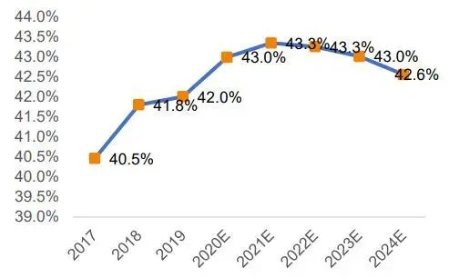 2017-2019 年衛(wèi)生巾業(yè)務(wù)的毛利率(%)