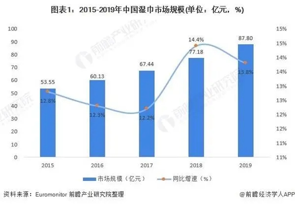 近年來,我國濕巾行業(yè)發(fā)展迅速,增速遠(yuǎn)超全球。同時,2019年底疫情的爆發(fā)進一步催生了國人對濕巾的需求,后疫情時代行業(yè)有望進一步突破。