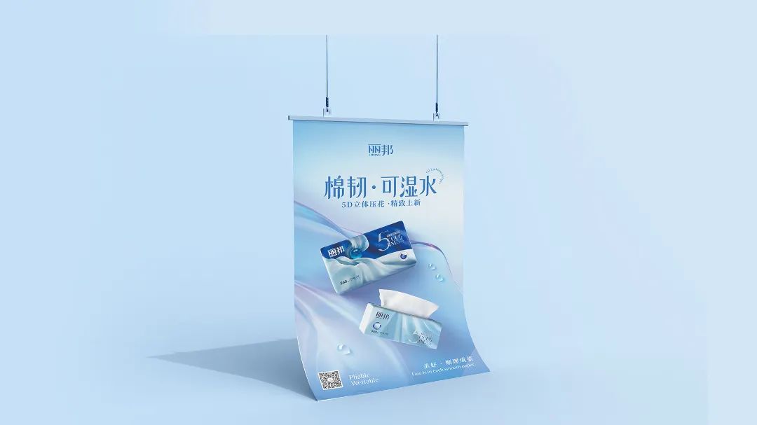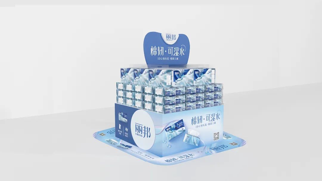 棉韌·可濕水系列攜5D立體壓花精致上新,海報購物袋堆頭展示架等終端物料一體配套,直指產品核心訴求。