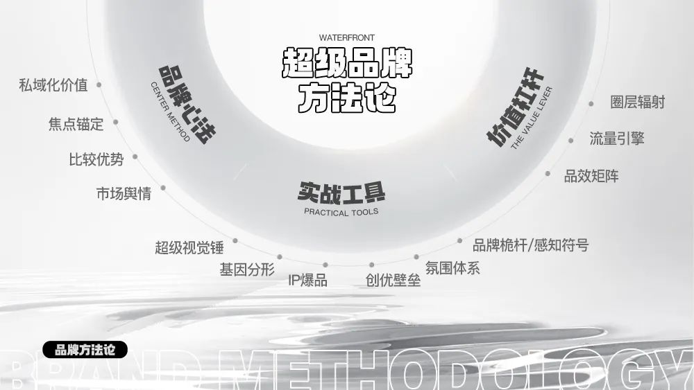 以品牌心法全方位縱深視野,從市場(chǎng)輿情、比較優(yōu)勢(shì)、焦點(diǎn)錨定和私域化價(jià)值四大維度系統(tǒng)化筑基,科學(xué)構(gòu)建高溢價(jià)品牌基礎(chǔ)。協(xié)同引進(jìn)整套實(shí)戰(zhàn)工具,賦能品牌創(chuàng)意壁壘、氛圍體系、超級(jí)視覺錘等核心溢價(jià)力。