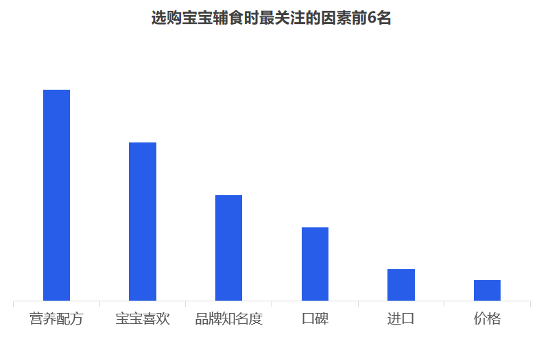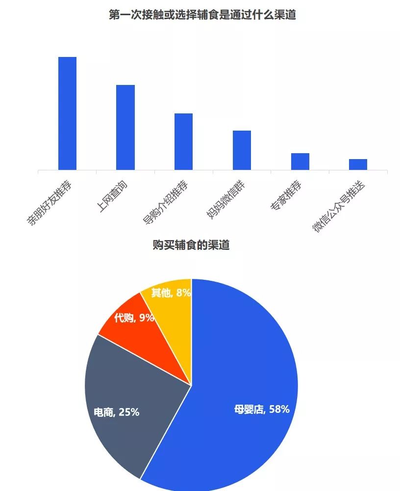 但是對(duì)于品牌而言,最重要的是洞察需求,一個(gè)好的洞察,一定是清晰揭示消費(fèi)者的傾向,暗示了一個(gè)市場(chǎng)機(jī)會(huì)。究竟品牌入局輔食的機(jī)會(huì)有多大,媽媽們是如何看待輔食的? 從當(dāng)前的嬰幼兒用品的采購(gòu)情況來(lái)看,媽媽負(fù)責(zé)嬰幼兒用品的采購(gòu),用戶占比超七成。奶爸也會(huì)經(jīng)常協(xié)助寶媽,參與到嬰幼兒用品的采購(gòu)活動(dòng)中,用戶占比為41.7%。 從近一年的百度指數(shù)來(lái)看,目前關(guān)注輔食最突出的地域是廣州、浙江、江蘇、山東、北京等,可見(jiàn),當(dāng)前一二線城市的消費(fèi)者對(duì)輔食的認(rèn)知教育有所提高,但是低線城市的消費(fèi)者對(duì)寶寶輔食的添加還不重視。 其次,從年齡段來(lái)看,“30-39歲”的消費(fèi)人群對(duì)輔食的關(guān)注度最高,而在這其中,女性對(duì)輔食的關(guān)注度遠(yuǎn)高于男性。 2019年母嬰行業(yè)觀察通過(guò)線上調(diào)研近10000人數(shù)的家長(zhǎng)進(jìn)行了輔食調(diào)查,其中80后占據(jù)24%,85后占據(jù)26%,90后44%,95后4%,對(duì)輔食的態(tài)度如下: 1、幾乎所有的媽媽都認(rèn)為有必要給寶寶添加輔食,并且有一半的媽媽認(rèn)為要在6個(gè)月時(shí)添加,而有32%的媽媽認(rèn)為在6個(gè)月-1歲開(kāi)始添加,還有16%的人在6個(gè)月以前就添加輔食。 2、大部分寶寶的輔食來(lái)源都是“購(gòu)買(mǎi)與自制”相結(jié)合,而在購(gòu)買(mǎi)輔食時(shí),媽媽們購(gòu)買(mǎi)最多的類型依舊是米粉,其次則是餅干、磨牙棒等小食品、營(yíng)養(yǎng)面等。 3、互聯(lián)網(wǎng)與社交圈對(duì)媽媽的購(gòu)買(mǎi)決策權(quán)的影響力較大,據(jù)調(diào)查顯示,媽媽們第一次接觸或選擇輔食大多都是通過(guò)親朋好友推薦,上網(wǎng)查詢等。當(dāng)然消費(fèi)者在購(gòu)買(mǎi)嬰兒輔食的渠道選擇上,其實(shí)與奶粉并無(wú)不同,為了保證產(chǎn)品的質(zhì)量和安全性,同時(shí)也為了可以得到育嬰專家的指導(dǎo)和幫助,消費(fèi)者更傾向于在專業(yè)的母嬰用品連鎖店或主流電商平臺(tái)購(gòu)買(mǎi)食品。 4、隨著85后、90后新生代父母的崛起,他們與父輩的消費(fèi)觀念并不相同,不再執(zhí)著與于進(jìn)口與價(jià)格等,而是開(kāi)始關(guān)注是營(yíng)養(yǎng)配方,重要的是寶寶喜歡。 5、對(duì)于寶寶而言,自添加輔食開(kāi)始,都是與奶粉喂養(yǎng)相結(jié)合,目前超一半的寶寶每天食用輔食的頻率都是一天兩頓。當(dāng)然這在一定程度上也決定了每個(gè)月在寶寶的輔食上的花費(fèi)是多少,從月消費(fèi)來(lái)看,可以明顯看出200以內(nèi)的將近半數(shù),當(dāng)然也可以看出花費(fèi)在300以上的有21%,可見(jiàn),對(duì)于嬰兒食品這個(gè)特殊的品類,以及嬰幼兒這個(gè)特殊的消費(fèi)人群,消費(fèi)持續(xù)升級(jí)仍然明顯。近兩年來(lái),嬰幼兒輔食高端化、有機(jī)化趨勢(shì)明顯。 近幾年來(lái),越來(lái)越多的媽媽意識(shí)到輔食的重要性,隨著我國(guó)居民可支配的收入不斷提高,消費(fèi)者投入了更多的關(guān)注給自己的孩子,作為寶寶的第二餐,消費(fèi)者愿意投入更多費(fèi)用,使用周期會(huì)不斷變長(zhǎng),且更注重輔食產(chǎn)品的品質(zhì)和質(zhì)量??梢?jiàn)隨著消費(fèi)水平的提升,年輕父母對(duì)于對(duì)孩子的飲食質(zhì)量、飲食營(yíng)養(yǎng)的投入更加重視,會(huì)更追求高附加值、高品質(zhì)的輔食,中國(guó)輔食市場(chǎng)會(huì)繼續(xù)高速發(fā)展。