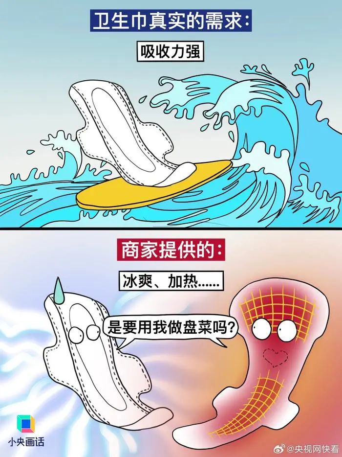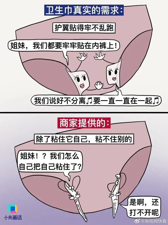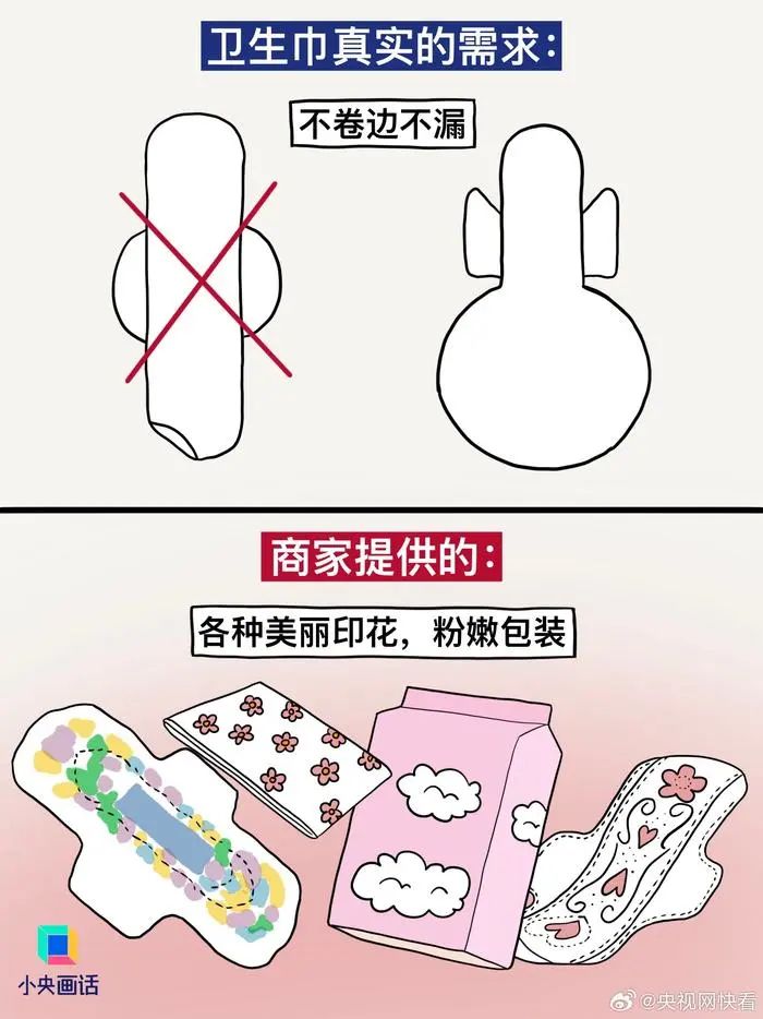 【#別拿消費(fèi)主義那套來做衛(wèi)生巾#】想不通,衛(wèi)生巾這種每個月都要用的東西,怎么會做得又貴又難用。商家以為我需要:加冰、加熱、加玻尿酸、粉嫩包裝、明星代言……實(shí)際我需要的:干凈衛(wèi)生、護(hù)翼好貼、安全不漏、價格適中。衛(wèi)生巾是日用品,別搞消費(fèi)主義輕奢那一套。(繪圖.阿彬的漫畫生活)#有種女性貧困叫月經(jīng)貧困#