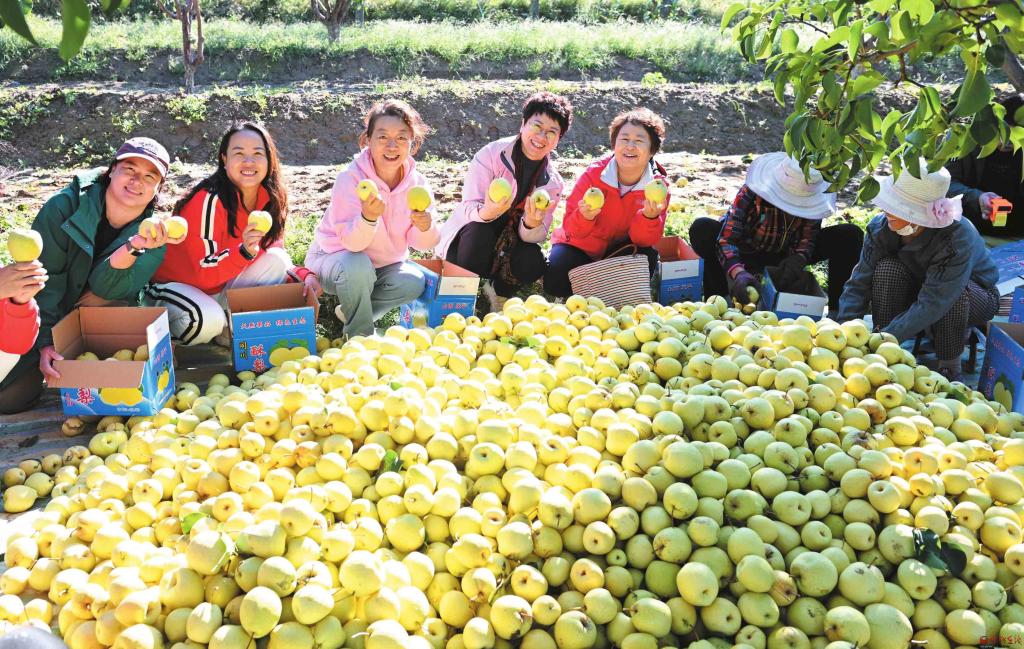 定襄縣北社東村、北社西村一帶盛產(chǎn)酥梨。由于交通便利,金秋十月吸引了眾多觀光客前來(lái)采摘。田間地頭,梨樹(shù)之下,一派豐收景象。(