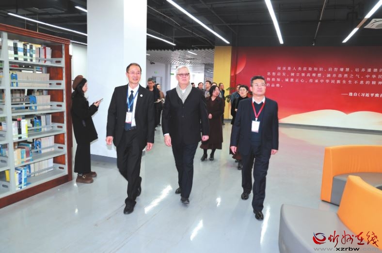 11月11日,2025年山西省高校圖書館年會在忻州師范學(xué)院召開。圖為與會嘉賓參觀忻州師范學(xué)院圖書館。
