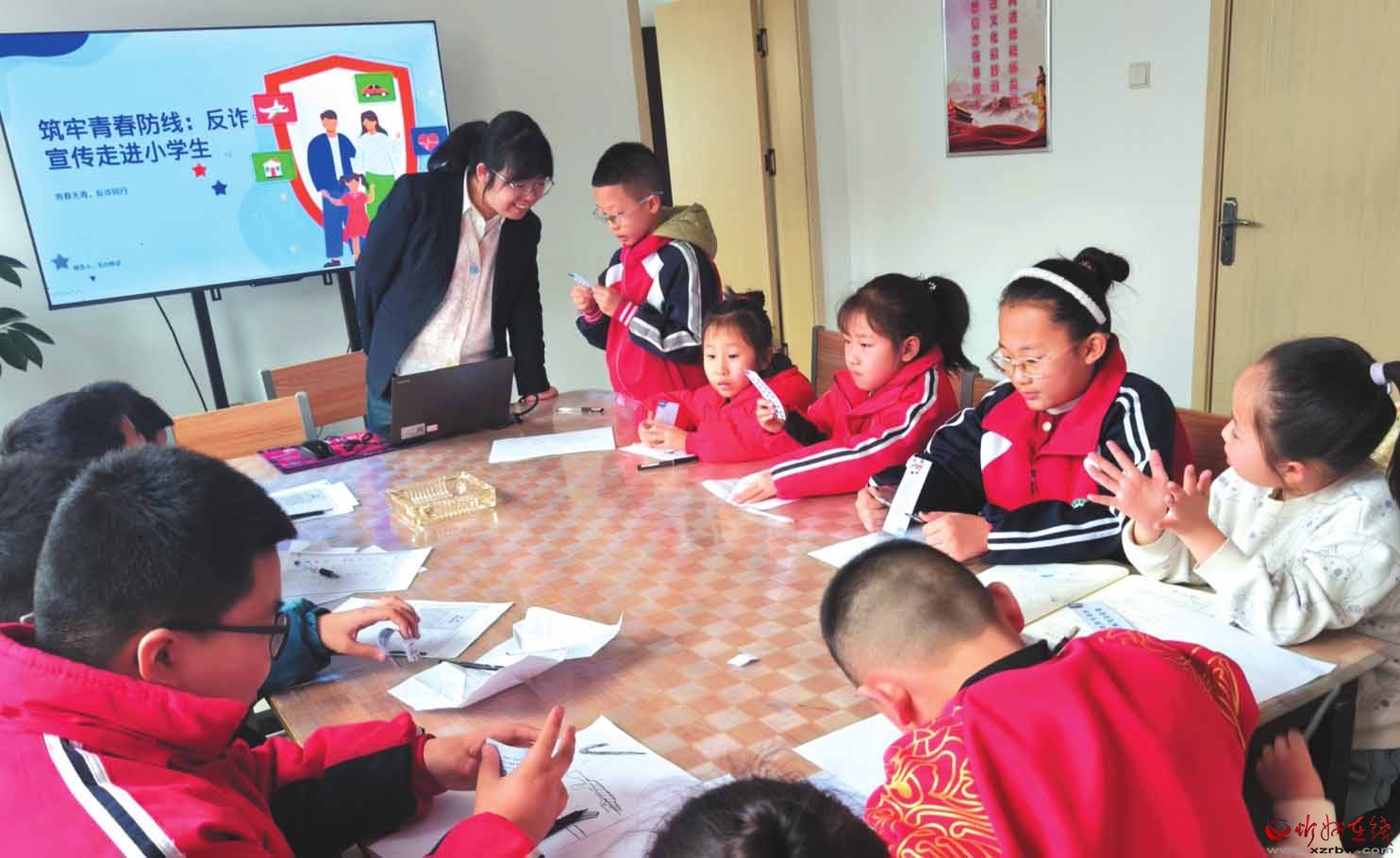 活動(dòng)還推出“反詐知識(shí)家庭包”,引導(dǎo)學(xué)生將反詐技能帶回家,教會(huì)長(zhǎng)輩防范詐騙。此次活動(dòng)既守護(hù)青少年安全,也彰顯了企業(yè)社會(huì)責(zé)任。圖為反詐中心工作人員與學(xué)生做反詐小游戲。(付文金攝)