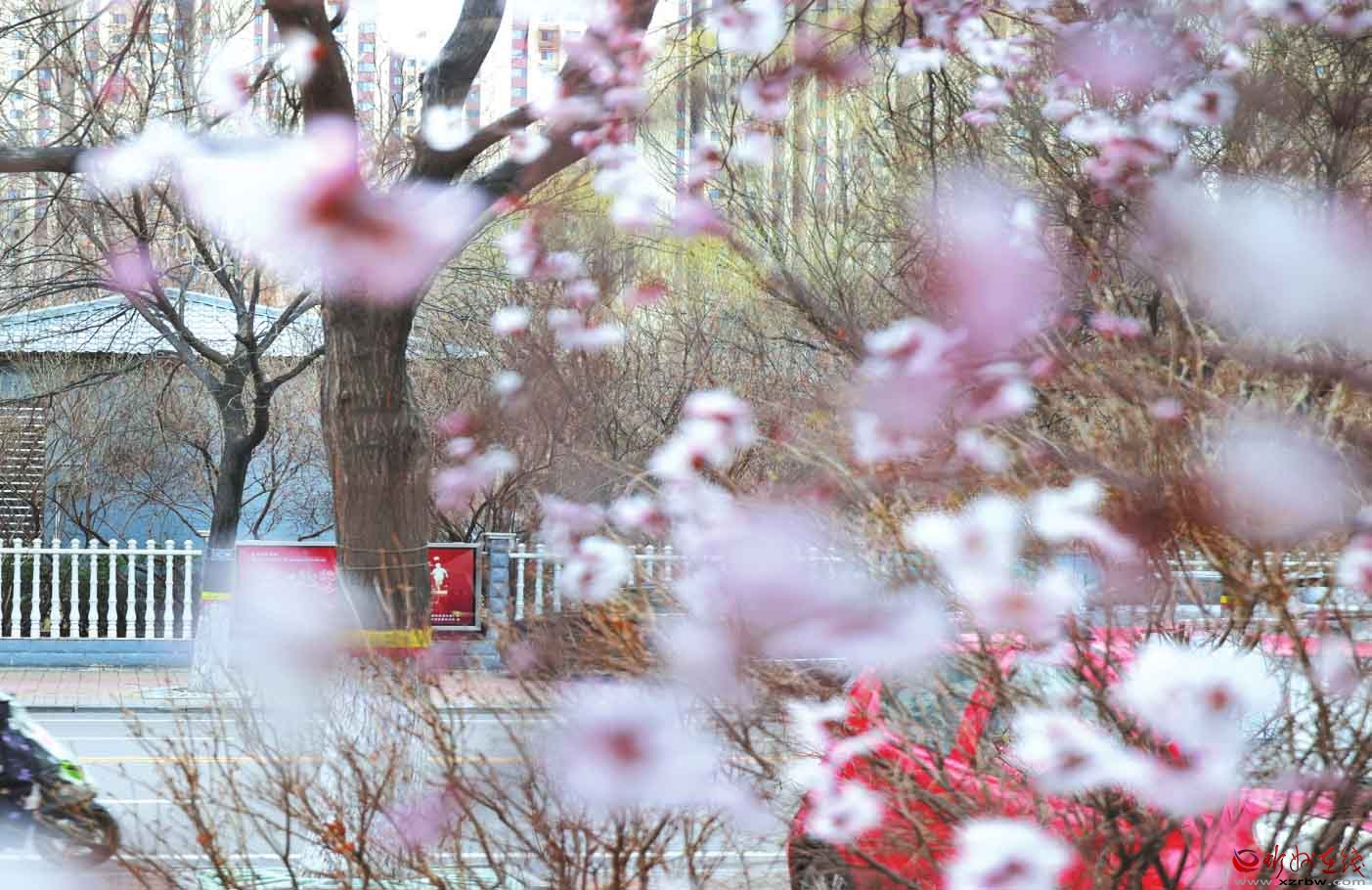 隨著氣溫逐步回升,忻州城區(qū)街頭的杏花悄然盛開。(