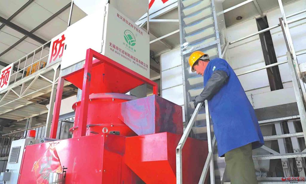 山西鑫豐盛農(nóng)業(yè)科技有限公司種子加工車間內(nèi),工人正加緊生產(chǎn)。