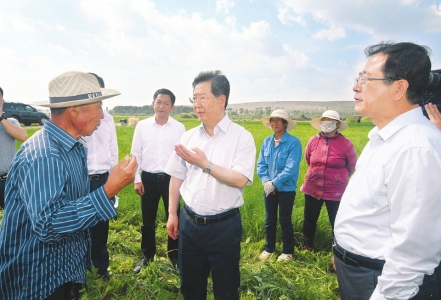 七月十三日,在右玉縣威遠(yuǎn)鎮(zhèn)小香蔥種植基地,省委書記樓陽生向農(nóng)戶了解產(chǎn)業(yè)帶動(dòng)增收情況。山西日報(bào)記者李聯(lián)軍攝 山西日報(bào)訊(記者楊文?。?月13日至14日,省委書記樓陽生深入朔州市右玉縣、朔州經(jīng)濟(jì)開發(fā)區(qū)進(jìn)行調(diào)研。他強(qiáng)調(diào),要深入學(xué)習(xí)貫徹習(xí)近平總書記視察山西重要講話重要指示,貫徹落實(shí)省委十一屆十次全會(huì)部署,弘揚(yáng)右玉精神,堅(jiān)定信心,久久為功,在轉(zhuǎn)型發(fā)展上率先蹚出一條新路來的歷史進(jìn)程中交出優(yōu)秀答卷。省委常委、秘書長廉毅敏一同調(diào)研。 夏日右玉,滿目蒼翠,綠樹蔥蘢,碧草如茵,一派生機(jī)勃勃的景象。右玉生態(tài)文化旅游示范區(qū)是樓陽生親自推動(dòng)設(shè)立的省級示范區(qū)。在示范區(qū)重點(diǎn)工程右玉城市會(huì)客廳項(xiàng)目現(xiàn)場,樓陽生聽取示范區(qū)建設(shè)和重點(diǎn)項(xiàng)目情況匯報(bào),指出,習(xí)近平總書記先后6次對右玉精神作出重要指示,全省上下要始終牢記習(xí)近平總書記教誨,把右玉精神貫穿于生態(tài)文明建設(shè)和轉(zhuǎn)型發(fā)展全過程,既要弘揚(yáng)好右玉精神,更要踐行好右玉精神,創(chuàng)新體制機(jī)制,推動(dòng)高質(zhì)量發(fā)展。右玉生態(tài)文化旅游示范區(qū)南河灣生態(tài)提質(zhì)工程,草坪、沙灘、濕地錯(cuò)落分布,成為群眾休閑的好去處。樓陽生聽取規(guī)劃設(shè)計(jì)和打造冬季冰雪項(xiàng)目情況介紹,沿步道察看河水治理及兩岸生態(tài)保護(hù)情況,與正在休憩的居民親切交流,強(qiáng)調(diào)要把實(shí)施山水林田湖草生態(tài)保護(hù)修復(fù)工程與新型城鎮(zhèn)化建設(shè)、全域旅游發(fā)展結(jié)合起來,以先進(jìn)理念科學(xué)規(guī)劃,精心設(shè)計(jì)策劃,把生態(tài)環(huán)境這一最大優(yōu)勢轉(zhuǎn)化為產(chǎn)業(yè)優(yōu)勢、發(fā)展優(yōu)勢。要加強(qiáng)原生態(tài)保護(hù)和風(fēng)貌管控,最大限度尊重自然、道法自然、敬畏自然,讓游客在右玉可以盡情享受生態(tài)美景、田園風(fēng)光。 玉龍文體產(chǎn)業(yè)園是煤炭企業(yè)轉(zhuǎn)型項(xiàng)目,已承辦多項(xiàng)國家級體育賽事,有力帶動(dòng)了右玉旅游業(yè)發(fā)展。樓陽生察看賽場、馬舍、場館設(shè)施,勉勵(lì)企業(yè)立足特色優(yōu)勢,延伸產(chǎn)業(yè)鏈條,將運(yùn)動(dòng)和觀光融為一體,發(fā)展國際化賽馬產(chǎn)業(yè),打造右玉生態(tài)文化旅游新名片。在了解產(chǎn)業(yè)園努力打造“生態(tài)+賽馬+低空觀光”新興產(chǎn)業(yè)情況后,樓陽生勉勵(lì)他們依托通用航空打造市場、打造品牌、吸引客源,進(jìn)一步提高右玉旅游目的地的影響力。 如何鞏固脫貧攻堅(jiān)成果,實(shí)現(xiàn)鄉(xiāng)村振興,樓陽生十分關(guān)注。在右玉縣城西側(cè)的威遠(yuǎn)鎮(zhèn),連片種植的小香蔥長勢喜人,村民們正在地頭忙著收獲。樓陽生來到田間,了解市場價(jià)格、產(chǎn)品銷路、田間管理,詢問收入收成。得知圖遠(yuǎn)公司引進(jìn)優(yōu)質(zhì)品種在右玉種植,冷凍加工的小香蔥在疫情期間出口銷路逆勢增長,帶動(dòng)群眾穩(wěn)定增收,樓陽生十分高興,他說,脫貧攻堅(jiān)靠產(chǎn)業(yè),全面小康、鄉(xiāng)村振興也要靠產(chǎn)業(yè)。要堅(jiān)持龍頭企業(yè)帶動(dòng),擴(kuò)大規(guī)模、拓展市場,通過土地流轉(zhuǎn)、吸納就業(yè)和資產(chǎn)收益等方式,使鄉(xiāng)親們持續(xù)增收致富。右玉縣康平村是威遠(yuǎn)鎮(zhèn)實(shí)施易地扶貧搬遷、集中安置的移民新村。樓陽生察看藥茶、雜糧等產(chǎn)品展示,聽取村民們的意見建議,進(jìn)入搬遷戶米倉家的新居察看居住生活條件,要求認(rèn)真抓好移民搬遷后續(xù)產(chǎn)業(yè)發(fā)展。在與下派的村黨支部書記交流時(shí),樓陽生指出,讓老百姓過上好日子,是我們一切工作的出發(fā)點(diǎn)和落腳點(diǎn),也是檢驗(yàn)我們一切工作成效的重要標(biāo)尺。年輕干部要珍惜基層工作鍛煉機(jī)會(huì),與人民群眾摸爬滾打在一起,砥礪品質(zhì),錘煉作風(fēng),不斷提升在基層一線做群眾工作的本領(lǐng)。朔州市啟元農(nóng)業(yè)科技公司經(jīng)營日光溫室600多棟,是該市的菜籃子基地。樓陽生進(jìn)入優(yōu)質(zhì)葡萄種植大棚,觀賞晶瑩剔透、鮮嫩欲滴成熟了的葡萄,并親手剪下一串為果園開園“剪彩”。他勉勵(lì)企業(yè)加強(qiáng)引種選育,緊緊依靠科技創(chuàng)新,使特色農(nóng)產(chǎn)品不斷提高市場占有率。 北方北斗信息技術(shù)公司是基于北斗導(dǎo)航系統(tǒng)生產(chǎn)終端應(yīng)用產(chǎn)品的高新技術(shù)企業(yè)。樓陽生察看企業(yè)自主生產(chǎn)的系列信息化產(chǎn)品,聽取智慧交通系統(tǒng)介紹,進(jìn)入車間了解生產(chǎn)流程,指出,要引進(jìn)研發(fā)平臺,集聚人才團(tuán)隊(duì),提升配套能力,打造產(chǎn)業(yè)生態(tài)。樓陽生還聽取了朔州市開發(fā)區(qū)產(chǎn)業(yè)布局、招商引資情況匯報(bào),強(qiáng)調(diào)要深化開發(fā)區(qū)改革創(chuàng)新,提高土地集約節(jié)約利用水平,通過點(diǎn)對點(diǎn)、專業(yè)化招商,以商引商、以企引企,使開發(fā)區(qū)真正成為轉(zhuǎn)