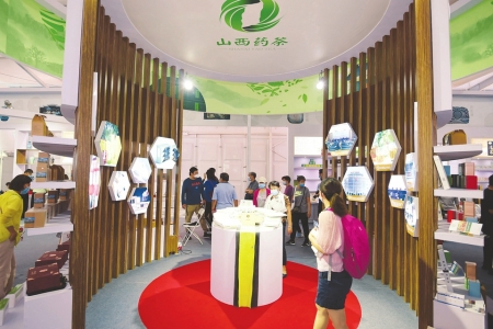 山西藥茶書籍展臺(tái)造型別致,書籍內(nèi)容全面,讓參觀者更好地了解山西藥茶。