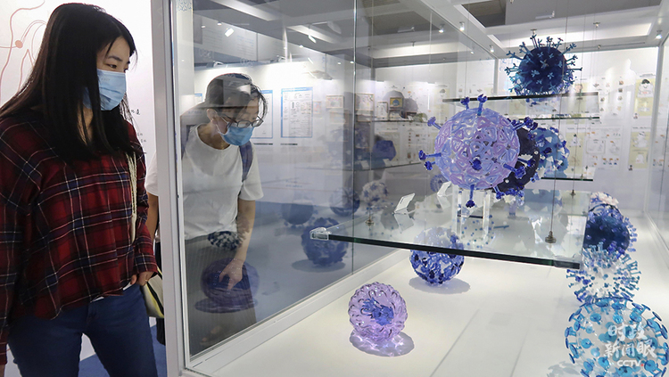 △“命運與共,攜手抗疫——科技與健康同行”主題展覽7月在上??萍拣^開幕,這是展覽現(xiàn)場。