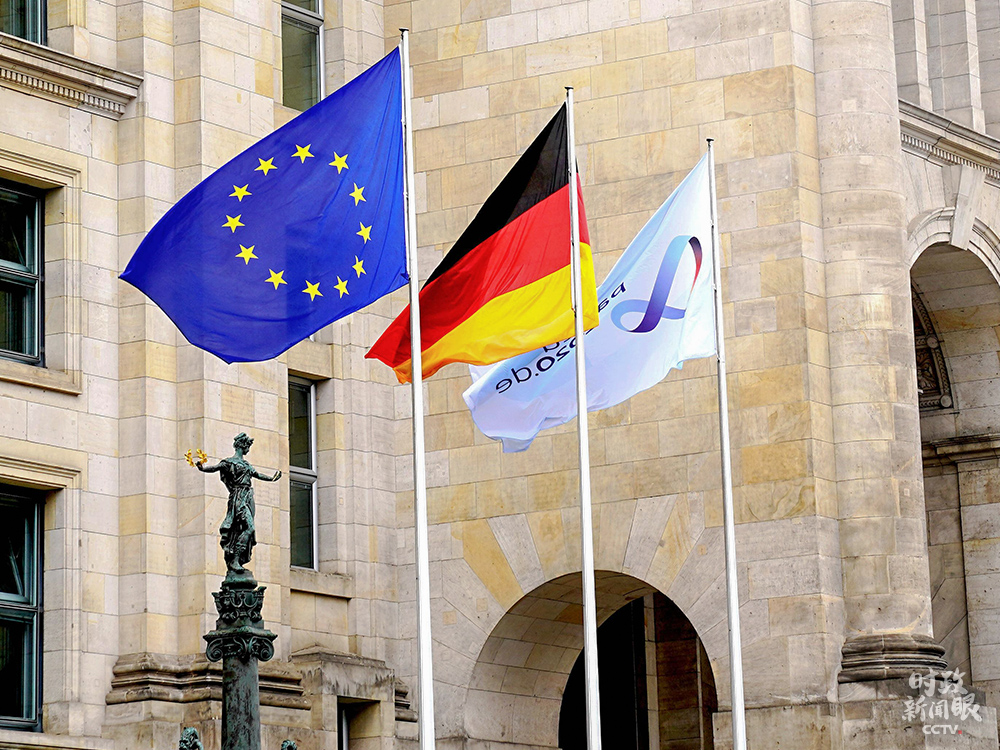 △今年7月1日起,德國接任歐盟輪值主席國,為期半年。這是德國國會(huì)大廈前從左到右依次掛出代表歐盟、德國和德國擔(dān)任歐盟輪值主席國的三面旗幟。