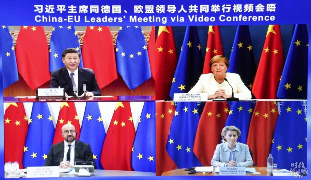 9月14日晚,中德歐領(lǐng)導(dǎo)人共同舉行了一場(chǎng)視頻會(huì)晤。會(huì)晤的各方是:中國國家主席習(xí)近平、歐盟輪值主席國德國總理默克爾、歐洲理事會(huì)主席米歇爾、歐盟委員會(huì)主席馮德萊恩。領(lǐng)導(dǎo)人就中歐關(guān)系深入交換意見、規(guī)劃發(fā)展方向、確定重點(diǎn)領(lǐng)域。