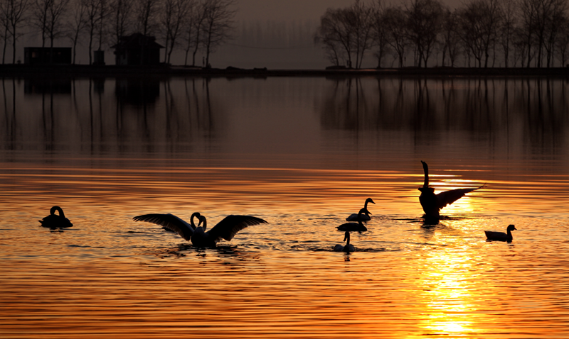 每年的10月下旬,經(jīng)過(guò)長(zhǎng)途遷飛的天鵝成群結(jié)隊(duì)來(lái)到圣天湖越冬,數(shù)量最多時(shí)達(dá)2萬(wàn)只。資料圖