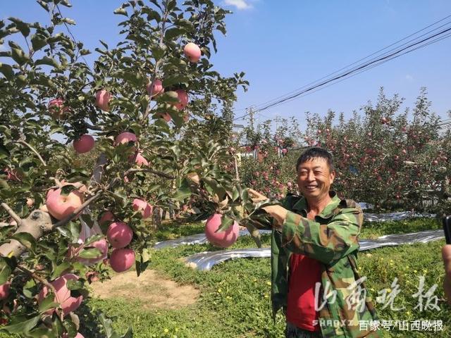 今年55歲的果農(nóng)趙志勇打理著6畝果園。采訪團(tuán)來到他家果園的時(shí)候,他正在觀察蘋果“上色”情況。剛摘下袋子的蘋果顏色發(fā)白,在暖陽的照射下,將漸漸穿上紅衣裳。別看現(xiàn)在還掛在枝頭,趙志勇家的蘋果已經(jīng)全部訂出去了,“每斤兩塊六,總共三萬多斤,能掙六萬塊錢?!彼τ卣f,“吉縣蘋果口感好,每年都不愁賣。”