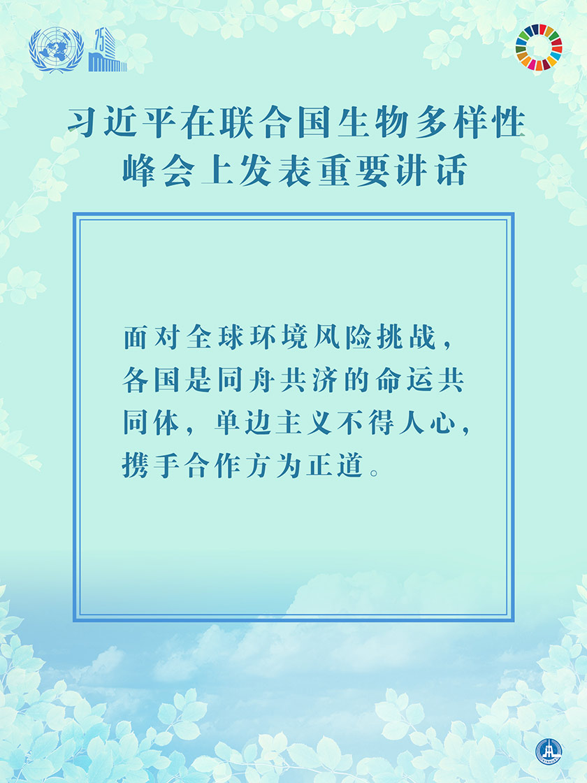 海報:習(xí)近平在聯(lián)合國生物多樣性峰會上發(fā)表重要講話 新華社發(fā)
