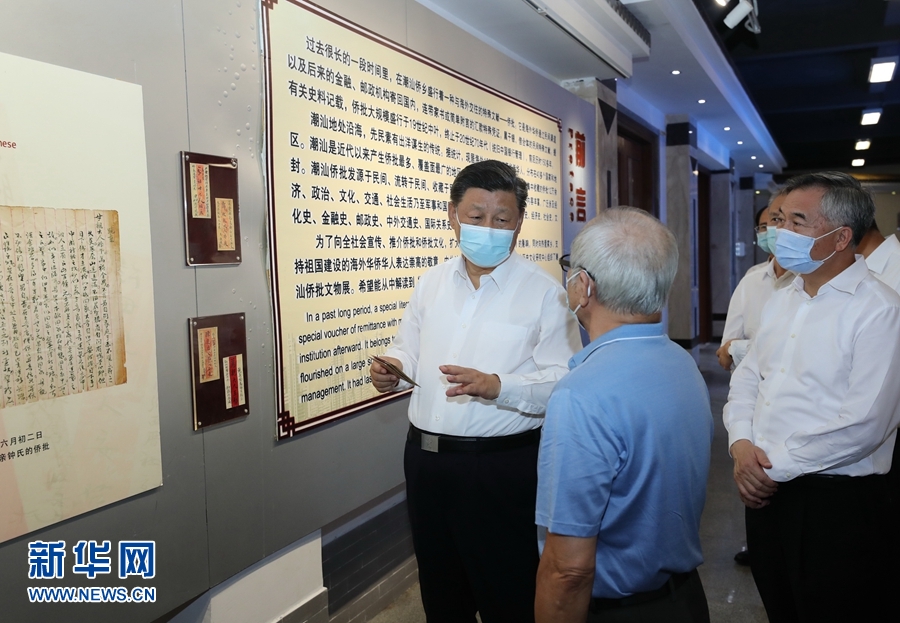 隨后,習近平參觀了具有潮汕僑鄉(xiāng)特色的僑批文物館。過去很長一段時間,海外華僑通過民間渠道將連帶家書或簡單附言的匯款憑證寄回國內(nèi),這些“僑批”成為研究近代華僑史的珍貴檔案。習近平聽取僑批歷史和潮汕華僑文化介紹。他強調(diào),“僑批”記載了老一輩海外僑胞艱難的創(chuàng)業(yè)史和濃厚的家國情懷,也是中華民族講信譽、守承諾的重要體現(xiàn)。要保護好這些“僑批”文物,加強研究,教育引導(dǎo)人們不忘近代我國經(jīng)歷的屈辱史和老一輩僑胞艱難的創(chuàng)業(yè)史,并推動全社會加強誠信建設(shè)。潮汕地區(qū)是我國著名僑鄉(xiāng)。汕頭經(jīng)濟特區(qū)要根據(jù)新的實際做好“僑”的文章,加強海外華僑工作,引導(dǎo)和激勵他們在支持和參與祖國現(xiàn)代化建設(shè)、弘揚中華文化、促進祖國和平統(tǒng)一、密切中外交流合作等方面發(fā)揮更大作用。