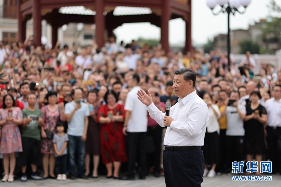 當?shù)厝罕姾陀慰蛡円姷娇倳泚砹耍瑺幭鄧鷶n上來向總書記問好。習近平祝大家生活愉快、健康幸福。他指出,我國改革開放和經(jīng)濟特區(qū)的建設(shè)同大批心系鄉(xiāng)梓、心系祖國的華僑是分不開的。我們即將全面建成小康社會、開啟全面建設(shè)社會主義現(xiàn)代化國家新征程,向第二個百年奮斗目標進軍。到本世紀中葉把我國建成富強民主文明和諧美麗的社會主義現(xiàn)代化強國,是海內(nèi)外全體中華兒女的共同心愿。今年是經(jīng)濟特區(qū)建立40周年,我特地來汕頭經(jīng)濟特區(qū)考察調(diào)研,就是要向國內(nèi)外宣示,中國共產(chǎn)黨領(lǐng)導(dǎo)中國人民將堅定不移走改革開放道路,奮發(fā)有為推進社會主義現(xiàn)代化建設(shè),鍥而不舍實現(xiàn)中華民族偉大復(fù)興的中國夢。希望鄉(xiāng)親們攜手努力,共同奮斗!