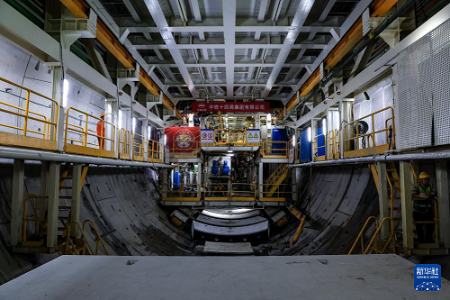 1月6日,“深江1號(hào)”盾構(gòu)機(jī)在珠江入海口海平面下掘進(jìn)。(新華社記者 毛思倩 攝)