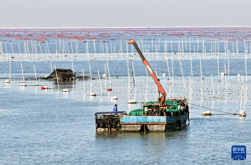 眼下,江蘇連云港市海州灣漁場(chǎng)養(yǎng)殖區(qū)的頭茬條斑紫菜迎來收獲時(shí)節(jié),“海上菜園”到處都是搶收紫菜的繁忙景象。
