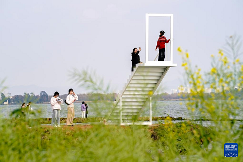 2月26日,游客在滇池邊一處拍照裝置拍照。(新華社記者 陳欣波 攝) 春日暖陽下,昆明滇池碧波蕩漾,遠(yuǎn)山如黛,紅嘴鷗翩躚起舞。游人沿岸漫步、駐足拍攝,共繪出一幅生動(dòng)宜人的春游畫卷。 (責(zé)任編輯:蔡文斌) |