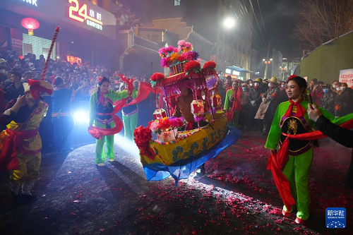 3月2日,在陜西旬陽(yáng)市蜀河鎮(zhèn)蜀河社區(qū),表演人員在“燒獅子”間歇時(shí)表演劃彩蓮船。(新華社記者 邵瑞 攝) 蜀河太平燈又名“蜀河燒獅子”,是陜西旬陽(yáng)市蜀河古鎮(zhèn)的春節(jié)傳統(tǒng)民俗活動(dòng),已被列入陜西省非物質(zhì)文化遺產(chǎn)名錄。 “蜀河燒獅子”于每年農(nóng)歷正月十三至十六舉行。夜幕降臨后,舞獅隊(duì)伍會(huì)走街串巷,在家家戶戶門前停留,通過舞獅來(lái)傳遞祝福。在此過程中,表演人員和圍觀群眾會(huì)點(diǎn)燃特制的煙花,朝“獅子”噴射火花。根據(jù)當(dāng)?shù)亓?xí)俗,“燒獅子”象征迎來(lái)好運(yùn)與吉祥,火花越猛,新年的運(yùn)勢(shì)越興旺。 (責(zé)任編輯:蔡文斌) |