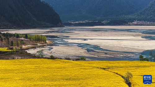 3月20日拍攝的西藏林芝市波密縣易貢鄉(xiāng)的油菜花田(無人機照片)。(新華社記者 普布次仁 攝)