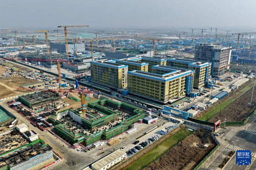 北京科技大學(xué)雄安校區(qū)建設(shè)現(xiàn)場(3月25日攝,無人機(jī)照片)。(新華社記者 牟宇 攝)