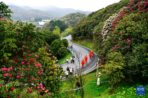 游客在貴州百里杜鵑管理區(qū)金坡景區(qū)賞花觀光(4月1日攝)。(新華社記者 楊文斌 攝)