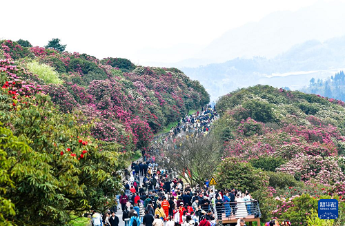 游人如織的貴州百里杜鵑管理區(qū)普底景區(qū)(4月1日攝)。(新華社記者 楊文斌 攝)