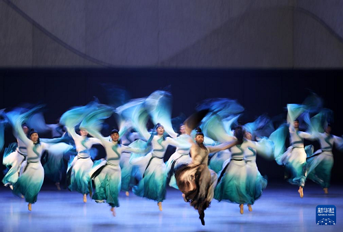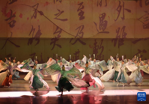 在遼寧大劇院拍攝的《古色·國寶遼寧》演出現場(4月19日攝)。(新華社記者 李鋼 攝)