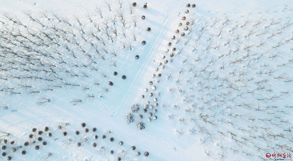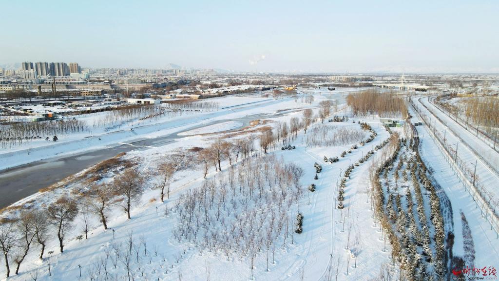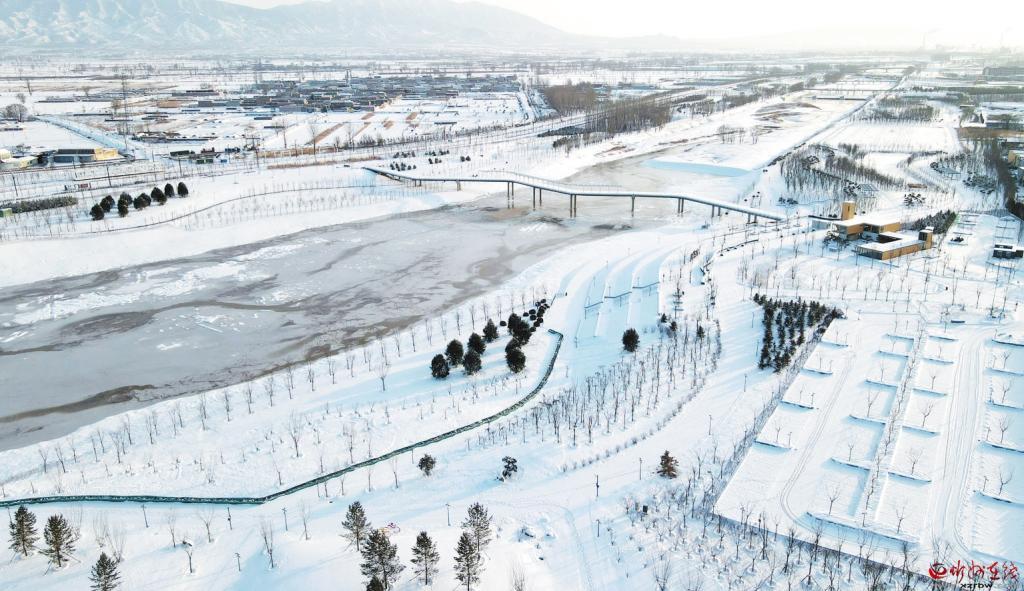 雪后的牧馬河生態(tài)公園,在白雪的覆蓋下,若隱若現(xiàn),美不勝收。(張存良 攝)