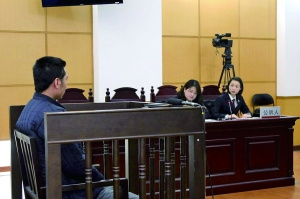 長城一日游的導(dǎo)游陳某,在車上收額外費(fèi)用時(shí)遭到乘客申先生帶頭抵制。爭執(zhí)中,陳某在高速路上追打申先生,致其被車輛軋傷腳。昨天,陳某因涉嫌強(qiáng)迫交易罪,在昌平法院受審(如圖)。