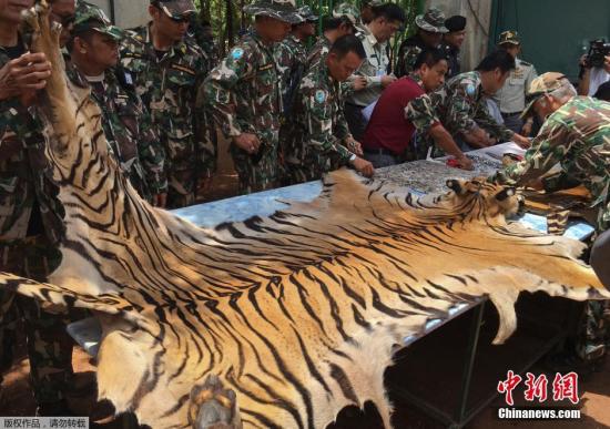 資料圖:當(dāng)?shù)貢r間6月2日,據(jù)外媒報道,泰國野生動物保護(hù)機(jī)構(gòu)又在涉事寺廟中發(fā)現(xiàn)了虎皮和大批用老虎尸體制作的護(hù)身符。