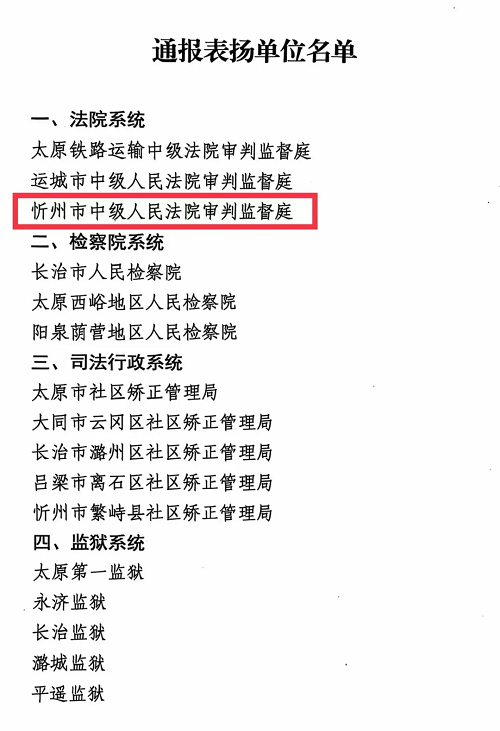 | 喜報(bào)!忻州中院審判監(jiān)督庭獲評(píng)全省減假暫工作表現(xiàn)突出單位 |