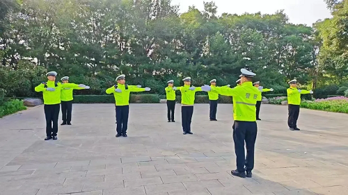 迎著第一縷陽光,沉睡的城市漸漸蘇醒,煥發(fā)出新的活力。 “嘀——”,清脆的哨聲劃破寧靜,忻州交警全體人員迅速集結列隊,以飽滿的熱情和堅定的步伐,開始了新一天的晨操晨訓?!跋蛴铱待R,向前看!”“報數(shù)!”在建設路與雁門大道路口、建設路與長征街路口、七一路與長征街路口……著裝整齊的交警們正在進行規(guī)范的手勢訓練和正步練習,充滿活力的“熒光綠”“警察藍”成為了忻州街頭一道亮麗風景線。這是忻州市公安局黨委為了提升交警隊伍的士氣和戰(zhàn)斗力,堅持練兵日常化、制度化、實戰(zhàn)化的一項重要舉措。 每日執(zhí)勤前,交警們都會利用寶貴的半小時時間,集中開展交通指揮手勢、執(zhí)勤形象以及基本隊列禮儀專項訓練。教官們嚴格要求,細致講解每一個動作的要領,并通過“晨會點評”來確保訓練的質(zhì)量和效果。大隊領導親自參與訓練,以身作則,復盤昨日工作、部署當天任務。全體交警充分發(fā)揮不怕苦、不怕累的精神,對照標準動作反復練習,確保做到每個動作規(guī)范、有力。 通過開展晨操晨訓,忻州交警的交通規(guī)范執(zhí)法能力、應急處突能力和街面疏導水平得到了顯著提升。這不僅全面提升了隊伍的綜合素養(yǎng)和整體形象,也增強了隊伍的凝聚力,為做好交通管理工作打下了堅實的基礎。 護校安園,撐起溫暖“平安傘”