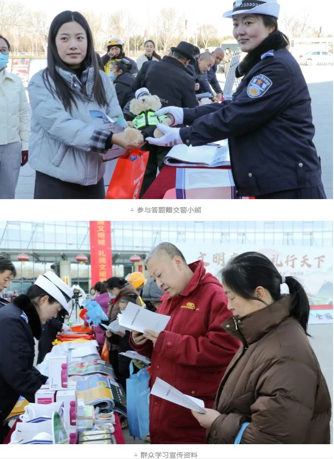 本次活動(dòng)以“文明交通 禮行天下”為主題,由市公安局、市文明辦、市委網(wǎng)信辦、市教育局、市司法局、市交通運(yùn)輸局、市應(yīng)急管理局和團(tuán)市委等八部門聯(lián)合主辦,旨在凝聚共治合力,推動(dòng)形成新時(shí)代文明交通共識(shí),讓文明出行理念深植人心,提升全社會(huì)文明交通水平。活動(dòng)現(xiàn)場(chǎng),民警和文明交通志愿者通過文藝演出、發(fā)放宣傳單、簽名承諾、有獎(jiǎng)答題、參觀警用裝備和展板等多種形式,向群眾宣傳交通安全知識(shí)。