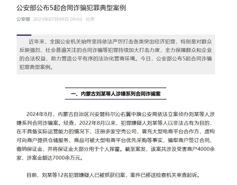 | 公安部公布5起合同詐騙犯罪典型案例 |