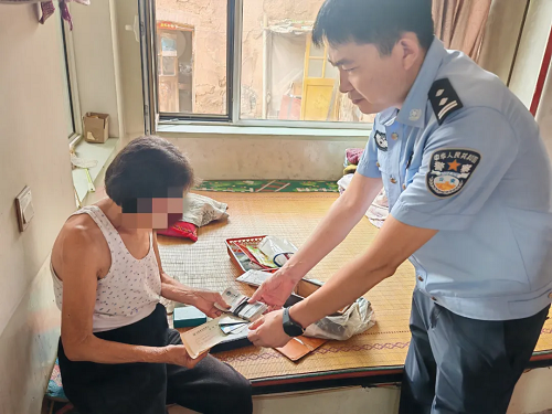 民警把財物交到老人手中并叮囑