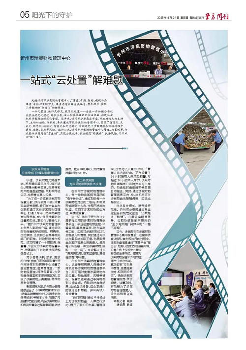 “為了進(jìn)一步破解涉案財(cái)物保管分散、執(zhí)行依據(jù)不明、處置效率低等難題,我們?cè)谌÷氏葎?chuàng)新打造了案件涉案財(cái)物管理中心,打通了跨部門協(xié)同辦案的全流程節(jié)點(diǎn),全力提升涉案財(cái)物處置規(guī)范化、高效化、智能化水平?!睋?jù)忻州市涉案財(cái)物管理中心負(fù)責(zé)人李鴻劍介紹,通過(guò)細(xì)化財(cái)物保管和移送規(guī)則,明確市、區(qū)檢察院、法院和公安局等相關(guān)部門的職能、財(cái)物移送操作規(guī)范,成功構(gòu)建了一個(gè)底數(shù)清、保管善、專業(yè)化的涉案財(cái)物保管平臺(tái),顯著降低了財(cái)物貶損風(fēng)險(xiǎn)和保管成本。
