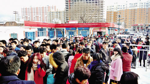 2月13日,一場大雪讓五寨縣火車站變得擁擠起來。當日是春節(jié)假日的最后一天,不少回家過年的外地工作者返程,恰巧前一天縣城迎來一場大雪,造成公路交通不便,使得更多的人選擇了乘火車返程。但臨時改變出行方式讓這些人很難買到票。(許凈 攝)
