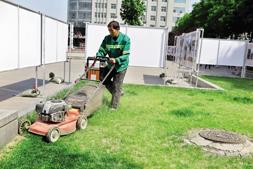 近日,城區(qū)日月廣場上,園林工人正在對(duì)草坪進(jìn)行修剪。隨著氣溫增高,雨水充足,草坪和路邊的灌木生長茂盛,園林工人及時(shí)對(duì)草坪、灌木進(jìn)行修剪,保證了城區(qū)綠化帶干凈整潔。(張志遠(yuǎn) 攝)