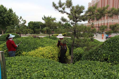 5月24日,幾位來自原平市城郊的留守婦女正在市區(qū)平安大街與京原北路交匯處修剪綠化帶。自原平市開展園林城市建設(shè)以來,為留守婦女提供了打工機(jī)會(huì),使她們在家門口找到活干,既增加了收入,又美化了城市,一舉兩得。(曹申義 攝)