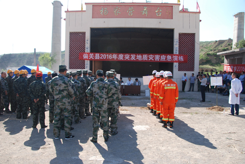 為了進(jìn)一步做好地質(zhì)災(zāi)害防治工作,偏關(guān)縣于6月8日下午在陳家營鄉(xiāng)楊家營村舉行2016年突發(fā)地質(zhì)災(zāi)害應(yīng)急演練。該縣地質(zhì)災(zāi)害防治領(lǐng)導(dǎo)組各成員單位相關(guān)人員以及各鄉(xiāng)鎮(zhèn)鄉(xiāng)鎮(zhèn)長、分管負(fù)責(zé)人約100余人參加了演練。通過此次演練,進(jìn)一步檢驗(yàn)了各部門職責(zé)的分工落實(shí),應(yīng)急隊伍的協(xié)調(diào)能力、技術(shù)裝備的合理配置、受災(zāi)群眾的防災(zāi)自我意識等各方面情況,為迅速、高效、有序做好地質(zhì)災(zāi)害防治工作奠定了良好的基礎(chǔ)。圖為演練現(xiàn)場。(劉源文 攝)