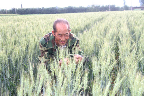 6月14日,農(nóng)民在原平市平地泉村地頭查看麥苗生長情況。該市積極引導(dǎo)農(nóng)民落實好一噴三防、拔草除雜等關(guān)鍵田管措施,確保種子純度。小麥進(jìn)入飽滿期,長勢良好,豐收在望。(褚震 攝)