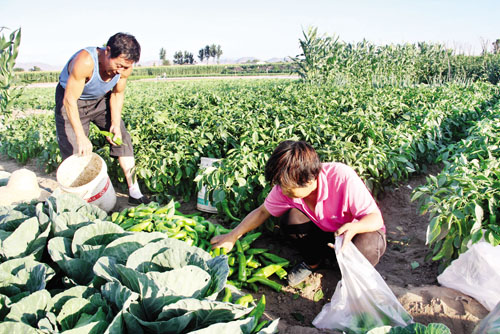 7月13日,原平市新原鄉(xiāng)解放街村農(nóng)民將收獲的青椒銷往市場。該市積極引導城郊農(nóng)民利用地理優(yōu)勢,大力調(diào)整種植結構,加大特色農(nóng)業(yè)開發(fā)力度,因地制宜種植紫甘藍、青椒等新鮮無公害蔬菜,不僅豐富了市民的菜籃子,而且鼓起了菜農(nóng)的錢袋子。(褚震 攝)